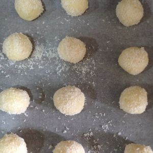 捏成小球,表面滚上椰蓉,我这个配方的量捏成12个我觉得挺合适的