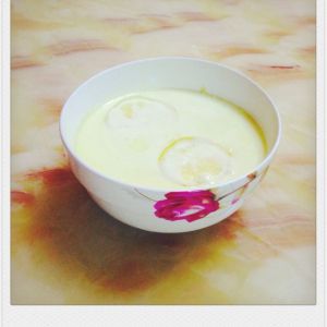 牛奶倒入打匀鸡蛋一并打匀 入锅蒸十五分钟