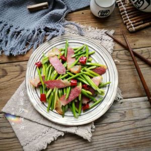 成品。不易入味的蒜苔正好与咸香的腊肉互补,两者同时入口,肥而不腻,清脆可口,咸淡味刚刚好。