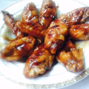 鸡翅洗净焯水一下拿出,放入盐,料酒,酱油,耗油,蒜头抓匀腌制半小时以上(我第二次做腌制了1个小时更入味)