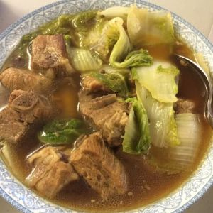 锅内放入少许油,烧开后放入白菜翻炒,加入排骨汤炖一会就好了