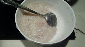 将葱碎,胡椒粉,料酒,淀粉,盐放入虾泥中搅匀。