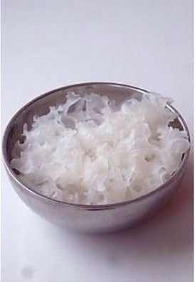 干银耳用温水泡发半小时后洗净,然后撕成小朵。