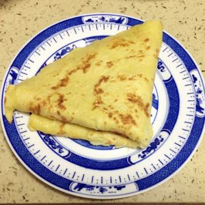 不粘锅放少许油,用勺子盛入一勺糊糊,用平铲推开成饼状,待饼成图状即可翻个儿烙另一面(饼的边缘不要太厚),全程中小火