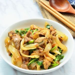 加入葱花姜丝炒香,将洋葱丝加入,翻炒至洋葱断生