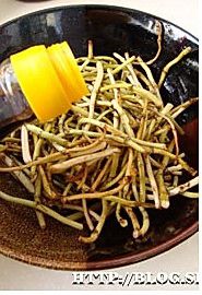 将鱼腥草中调入醋,适量糖,盐,麻油,蒜泥。