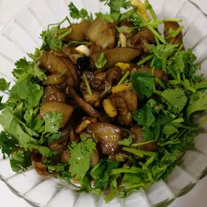 热锅凉油 将八角 干辣椒先放入锅中煸炒 直到有香味 然后放入葱姜蒜 再翻炒出香味 放入刚刚煸炒至软烂的茄子 小火 放入甜面酱 酱油 耗油 白糖 盐 翻炒 关火后再放入一些生蒜末 以及香菜末 就可以出锅啦!