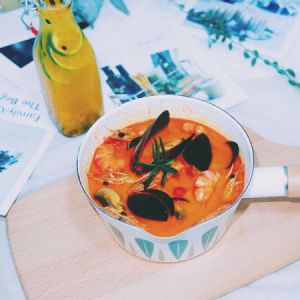 出锅前倒入椰浆挤入柠檬汁,完成啦啦!