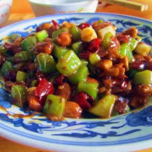 锅里倒油,油要稍多一点,油温8成热时,锅离火,把鸡肉入并迅速划散,上火,大火翻炒至鸡肉刚变色时盛起,(注意油要多噢!还有很关键的就是滑鸡肉时,锅里的油温不能太高,要离火,待鸡肉划散之后再上火。这是把鸡肉炒嫩的关键);锅里留适量油,倒入鸡肉,干辣椒段和花椒翻炒,加入适量豆瓣酱翻炒(注意鸡肉不能炒太久,要快)。此时能闻到川菜味啦(≧∇≦)
