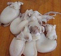 墨鱼仔剥去外皮,去除背部小硬壳(海螵蛸),掏清内脏,切掉眼睛,冲洗干净备用。把芝麻炒香备用。