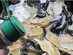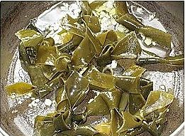 买回来的干海带用水浸泡两个小时以上,水里可以放点醋加快软化。