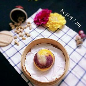 南瓜、紫薯,去皮洗干净,切成薄片,放蒸锅里蒸熟。