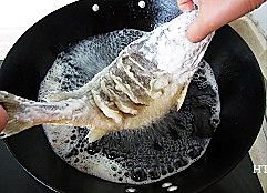 热一锅油,油六七成热时放入鱼,