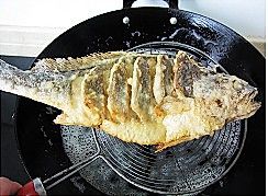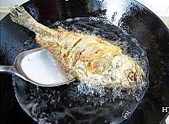 再烧热油,将炸好的鱼复炸一遍