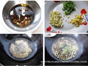 事先泡发好的木耳洗净撕成小朵,葱姜切碎,蒜剁成末,将油锅里的油全撇出,放小半碗的水,加入三大勺白糖和三大勺醋,放少许盐滴几滴酱油,将葱姜蒜放入、木耳放入,点几滴香油