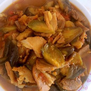 茄子下锅翻炒