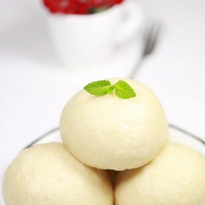把剂子光滑的一面往里面包拢,放在案板上滚圆,见图;