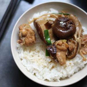 倒入香菇水,如果不够,需添加清水至能淹到鸡块的位置