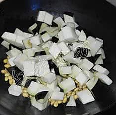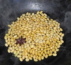 黄豆煮至八成熟就可以了。 把煮好的黄豆中的水倒出一部分,留少许就可以
