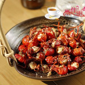 翻炒几下后加入椒盐慢慢翻炒, 让椒盐均匀的裹在小龙虾上;
