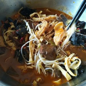 金针菇,鸭血先放,这些是要煮的时间长的,鸭血最少煮十分钟哦,然后放毛肚,木耳,豆芽,豆腐皮,五花肉,豆芽也可以先焯水放到下面垫底。放适量调味料,