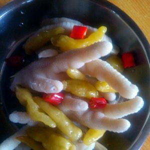 起一锅冷水,放入鸡爪,八角两个,花椒一小把,三四片姜,料酒适量,煮开后再煮8~15分钟。