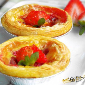 好香的蛋挞就烤好了,我还在上面加了点新鲜草莓~~