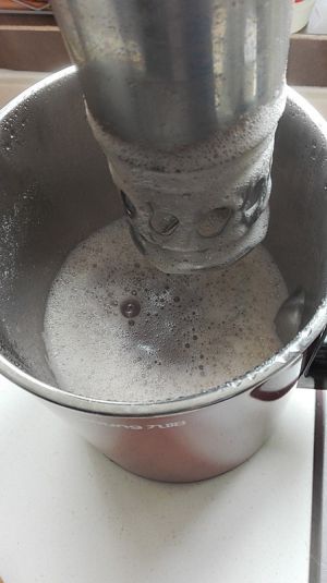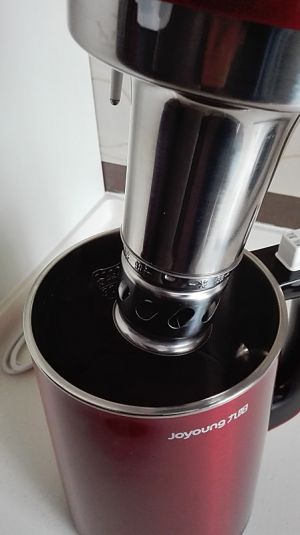 时间到,豆浆机鸣叫提示,去掉电源,抬起机头,打好的豆浆;