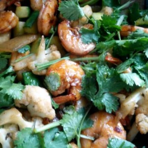 锅里倒油两勺,我用了炸虾的油,热后放入花椒,葱花,姜蒜,郫县豆瓣酱可根据自己对辣的需求程度放,我用筷子夹了一点,炒出香味倒入虾,翻炒放少许老抽,倒入菜花,黄瓜,冬瓜翻炒,根据口味放少许盐,待冬瓜变色后放入鸡精,香菜即可!