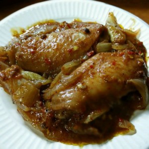 然后电饭锅里放点油 热了之后下洋葱 把香味弄出来 再把鸡翅和作料倒进去 30分钟就好了 当中翻翻面