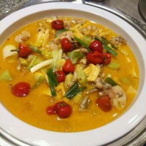 田鸡下入煮断生,捞出装在莴笋腐竹上面。汤汁要先用陈醋 生抽 糖 盐 鸡粉调味。 汤汁谣入装盘。