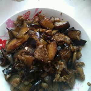 茄子切小片用盐淹上,蒜切沫,老抽一大勺加入少量糖