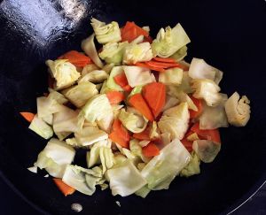 胡萝卜和莲花白先用调和油煸炒。