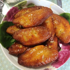 烤箱230度,预热10分钟,放入鸡翅,正面230度,10分钟,取出翻面,230度,10分钟。取出鸡翅一面抹上蜂蜜,继续烤5分钟