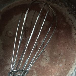 牛奶200克和巧克力20克倒入奶锅加热,蛋黄加35克糖打至发白,牛奶放至微凉后和蛋黄胡混合均匀,小火加热至微沸即可离火
