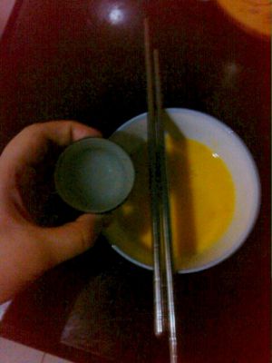 打散后,加入一茶杯的水,再打均匀,一定要均匀。