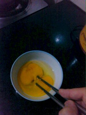 鸡蛋打到碗里,平时吃饭的晚,把鸡蛋打散打均匀