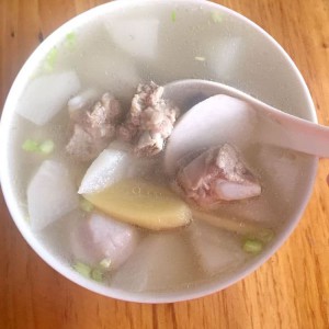 煲到20分钟左右时就加入芋头和萝卜 再煲10分钟 就可以出锅了