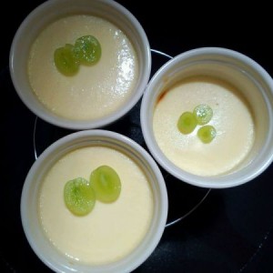 蒸好闷了段时间,揭锅,我用葡萄做了点缀,放入冰箱冷藏室,两个小时后就可以来吃啦~