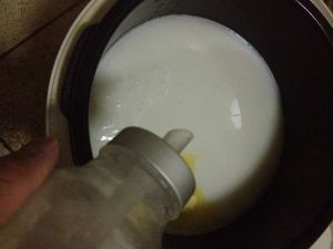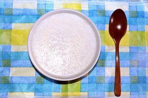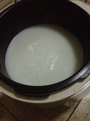 做好后,用勺子将粥搅匀,口感如丝般润滑的牛奶粥就做好了,吃吧亲