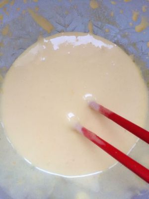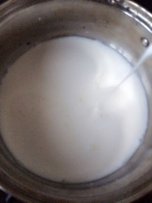 热好的牛奶一点点加入到鸡蛋液中,不要一次性加入,这样很容易把鸡蛋煮熟哦