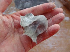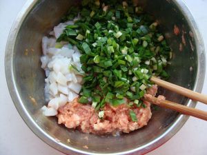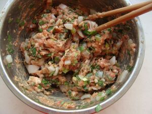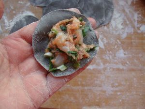 放入墨鱼肉馅。