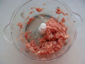 肉和姜放在绞肉机内,启动绞肉机二档约三十秒