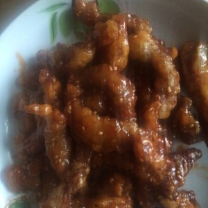 弟四步:留底油加入番茄酱放入炸好的肉翻炒均匀撒入芝麻出锅,可以享用了