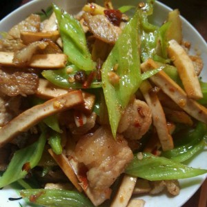 姜,蒜,(我这里为了再加点辣味,所以再加了几个干辣椒,)豆腐干切丝,青椒切菱形狀备用
