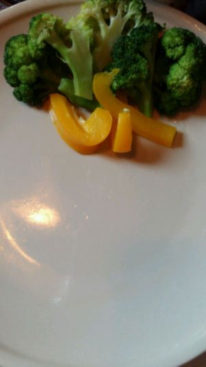 西兰花 放入煮沸的水中抄一下 彩椒切成条状 摆盘备用