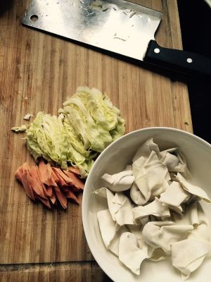 先准备好材料,馄饨准备多少只看自己食量,一般8个左右够了。