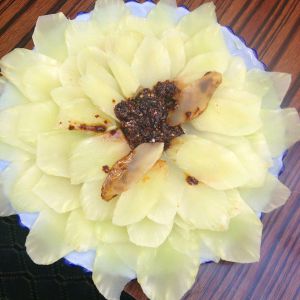 把搅拌好的调料 倒在中间 吃时拌匀即可