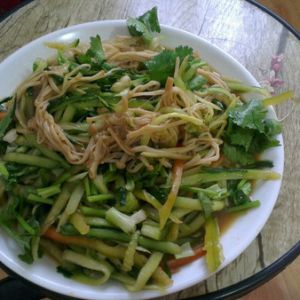 把凉好的金针菇和黄瓜辣椒同时倒入凉菜盆中,放入醋,味极限少许,香油,麻汁依个人口味放多少,千万不能少了盐-盐为五味之母,少添一点盐既能提鲜又能增加菜的口感,最后加一丢丢鸡精.香菜搅拌均匀即可装盘