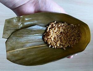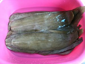 粽叶泡好洗净修剪去头尾。